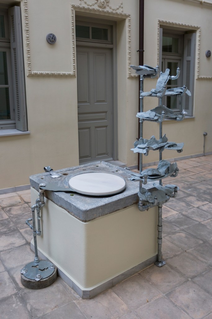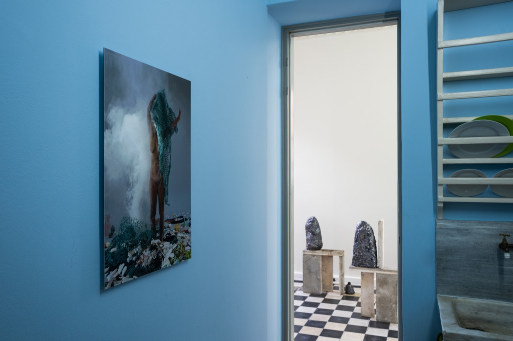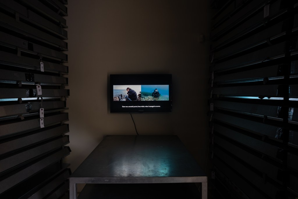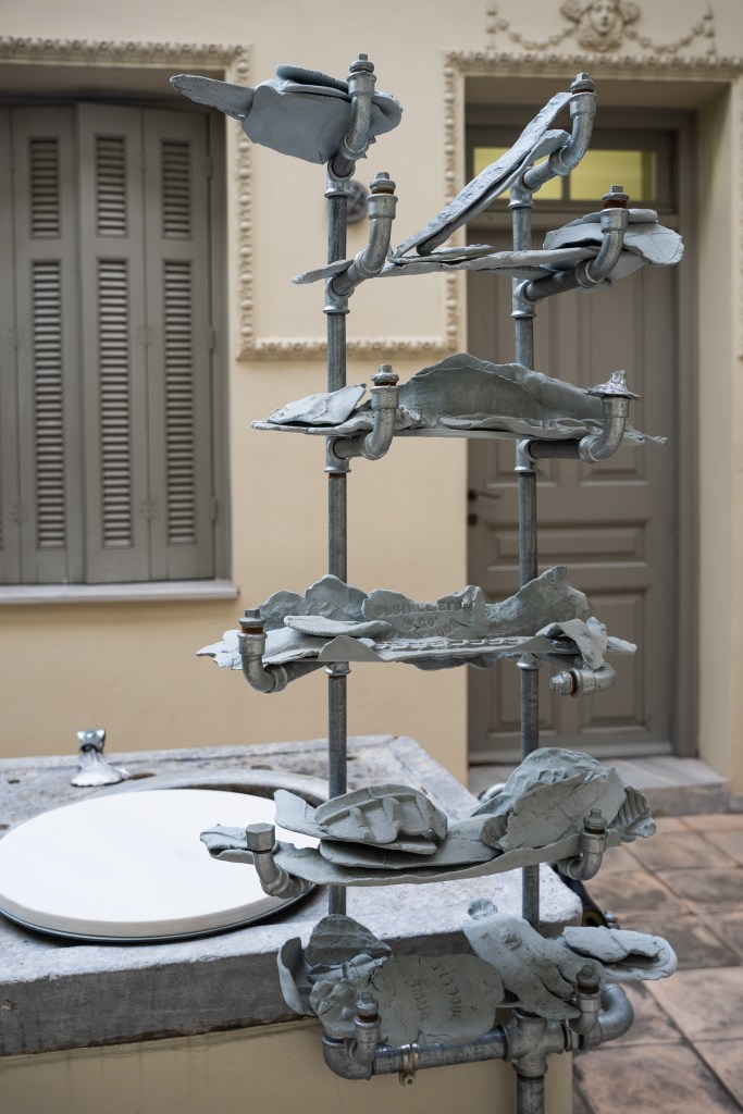 From the positionality of the Mediterranean South, the artists participating in the exhibition Wet Heart investigate problems such as water scarcity, the deterioration of the natural environment due to industrial, touristic, and military activities, and the pollution of waters due to plastics and microplastics; at the same time, they reflect on their impact onto vulnerable human and non-human lives. Ileana Arnaoutou and Ismene King create the site-specific sculpture A Conservation of Water-Writings fueled by encounters around the well, and they attempt to restructure the story of the Metaxourgeio’s hidden waters. The audiovisual work To Fall With Grace by Despina Charitonidi, developed in collaboration with the synchronized swimming team Naiads, tackles the unseen processes of human interventions in water-related environments, as well as their consequences on human and non-human lives. In the performance for the camera SeaMonster II, Eleni Mylonas stages her own body among the plastic waste she has collected from the shores of Aegina. She negotiates the future of the planet, the humans’ relationship with nature, and the interdependence of “bodies of water.” Maria Nikiforaki presents the audiovisual works Hydrodance: Devil’s Well and Hydrodance: Elephant Cave, two original underwater choreographies with free divers at the Devil’s Well in Attica and the Elephant Cave in Crete, and researches the loss of sea biodiversity due to anthropogenic activities.
