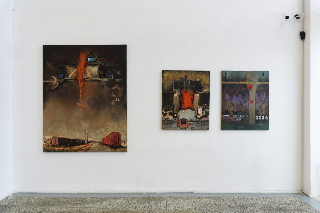 The concept of encounter permeates both the thematic and aesthetic choices of the artist. Drawing from personal memory—family, beloved poets, travels, floods, changing seasons—as well as his daily observation of the station as an “open studio” of images, he weaves elements of realism, surrealism, expressionism, impressionism, and pop art into a uniquely personal, hybrid visual language.