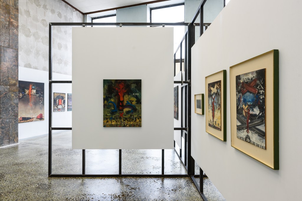 At the heart of the exhibition is a non-linear narrative in which periods of creation overlap. Series, motifs, and experiments converge with more structured phases of his work, allowing visitors to experience the movement and evolution of the artist’s creative world. Clocks, warning signs reaching toward the sky with potential cosmological or transcendent symbolism, ochres, enamels made during his travels in America, and signature works from the Egypt series—combining automatic writing, expressionist forms, calligraphy, and numbers—complete the visual journey the exhibition proposes.