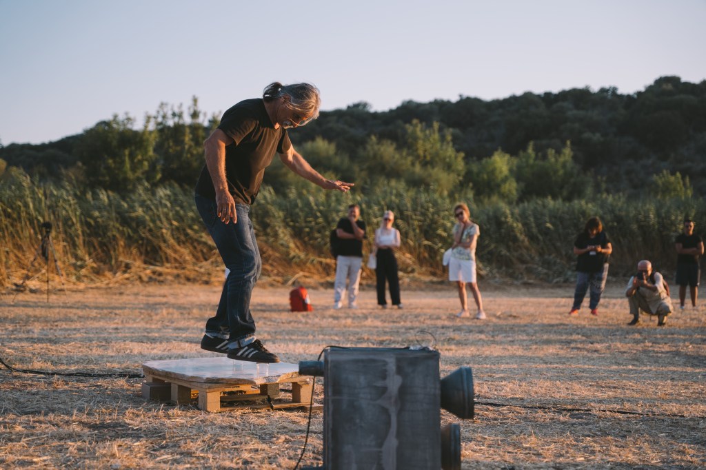 RAST Diversion is a site-specific installation and sonic event by Panos Charalambous and Angelos Krallis, deeply rooted in the geomythology of the Achelous River—a living archive where natural phenomena become inscribed in human narratives as both memory and transformative force. Conceived especially for the harbor deck—the neosoikos, or “house of the ship”—at the Oiniades archaeological site, the work unfolds in a space where the river once met the sea. This work responds to my ecofeminist invitation, one sensible to the relation with water and vulnerable communities.